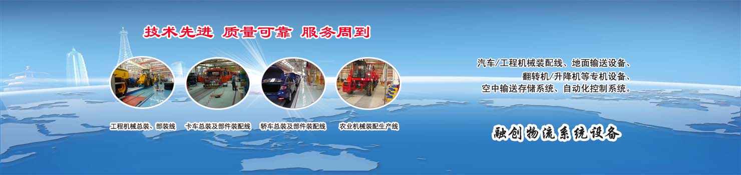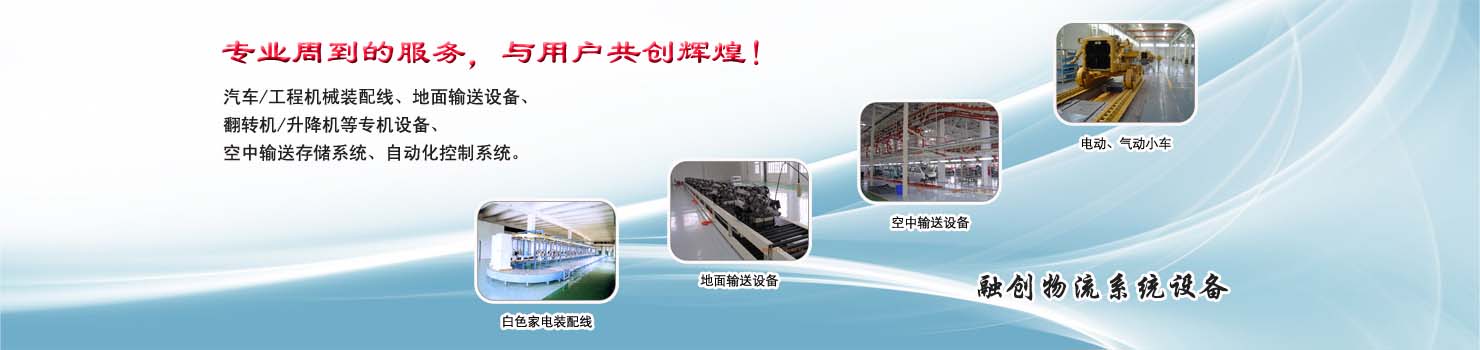 無錫市融創(chuàng)物流系統(tǒng)設(shè)備有限公司專業(yè)從事物流輸送設(shè)備、各類裝配流水線設(shè)備、各類生產(chǎn)非標專機設(shè)備和自動化控制系統(tǒng)的專業(yè)生產(chǎn)企業(yè)。廣泛應(yīng)用于轎車、卡車、客車、各類工程機械、發(fā)動機、車橋、農(nóng)業(yè)機械、郵政、家電等行業(yè) ...... >> more >>